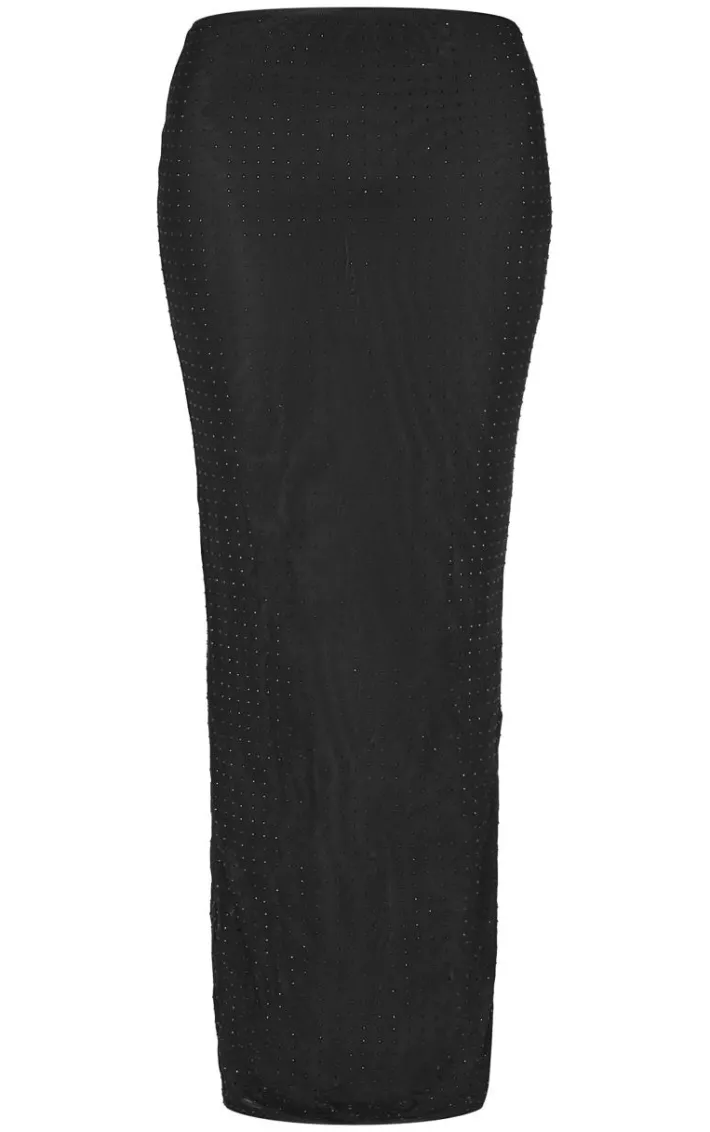 Keep it chic in this black hot fix mesh maxi skirt. Brought to you in a black hue mesh material with a hot fix design for that extra touch of luxe and a figure-flatting maxi length, how can you say no? Style this maxi skirt with a crop top and heels for a look they won’t be able to take their eyes off.