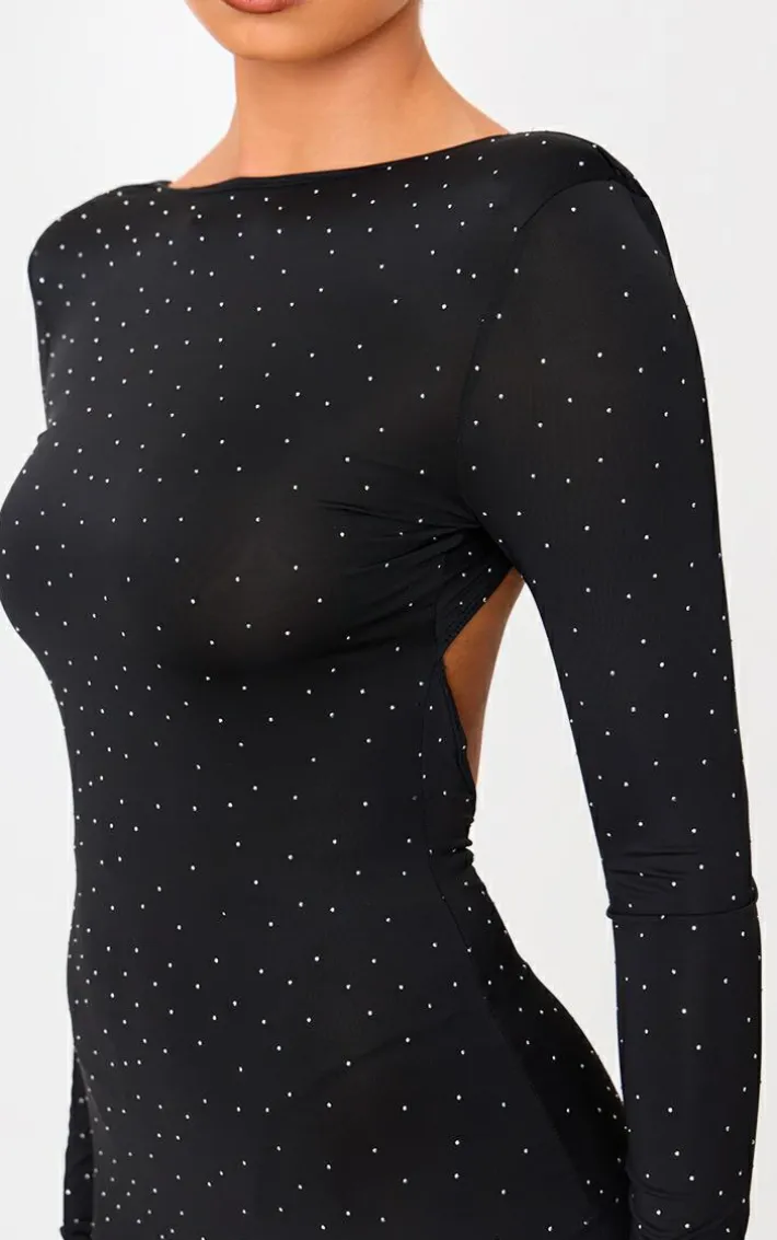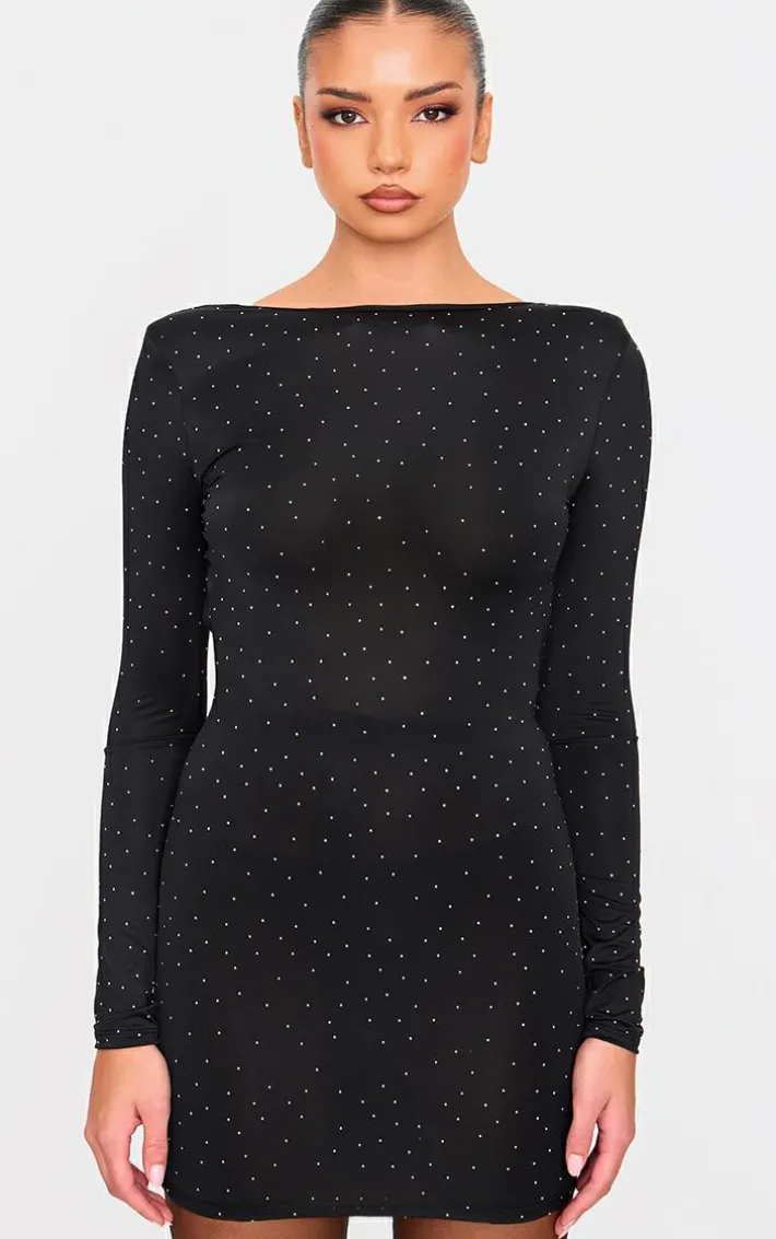Add this black hot fix mini dress to your collection for a statement look you’ll be reaching for again and again. Brought to you in a chic black hue, with a luxe hot fix design and flattering fit, this mini dress is all the new you need. Pair with some simple accessories, tights and court heels for a fool proof finish.
