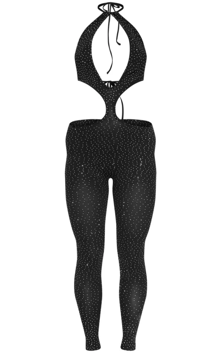 You are sure to be the center of attention in this black hot fix seamless cut out strappy jumpsuit. Brought to you in a black seamless material with a hot fix seamless design, we are seriously obsessed. This strappy jumpsuit has a cut out detail that will have hearts racing no matter what. Team with a pair of clear heels and your fave statement accessories for a look like no other.