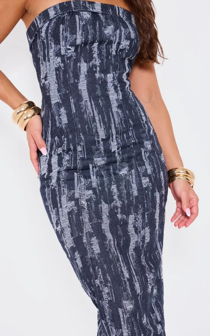 Own the night in this black jacquard style strapless denim maxi dress. Brought to you in a black denim material with a jacquard style and a strapless design, you are sure to turn heads and tap into your confident side in this dreamy piece. This maxi dress is sure to make you the center of attention no matter what. Style the look with court heels and statement accessories to earn that best dressed title.
