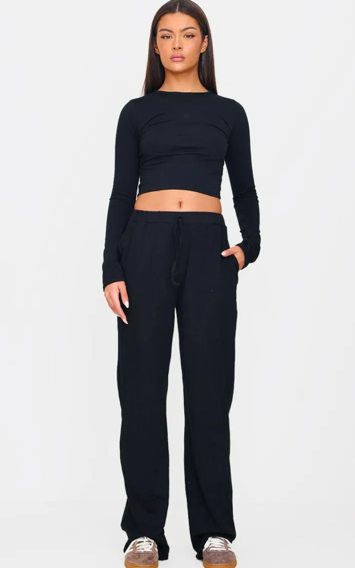 These black jersey cotton wide leg Pants are sure to be a staple in your new season wardrobe. Brought to you in a black jersey cotton material with a wide leg design, what more could you want? Style these black Pants with the matching top and sneakers for an effortless everyday look like no other.