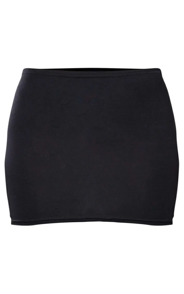 Turn heads in this mini skirt. Featuring a black jersey material with a low waist design and a micro length, what’s not to love? Style it with the matching top, knee-high boots and some silver hoops for a look we are obsessing over.