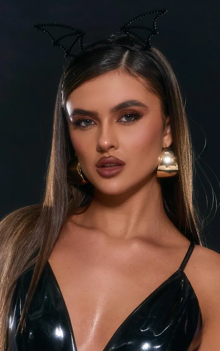 Complete your weekend outfit with this black jeweled headband. This headband is brought to you in a black jeweled material with a bat wing design, how could you turn this down? This headband will have you being the best dressed at your next big event doll.