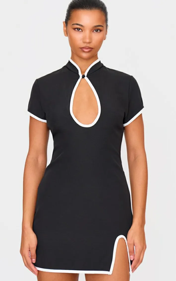 Look all kinds of chic in this black key hole contrast mini dress. Brought to you in a black hue material with a key hole design and contrast lining detail, this mini dress is a must have. How can you resist? Style with slip on heels and simple accessories for a look like no other. It’s a yes from us.