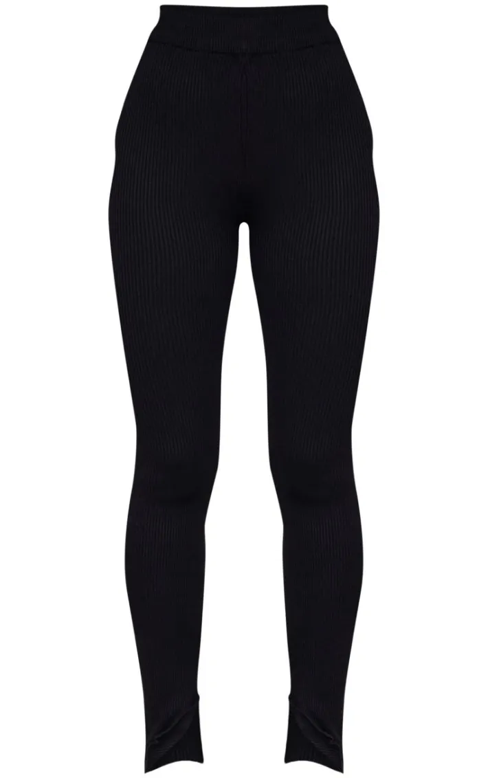 Keep your look simple but chic with these leggings. Featuring a black knitted ribbed material with a high waisted fit and a split hem design. Just add the matching pieces, a shoulder bag and fresh kicks for the perfect everyday fit that will get you noticed.
