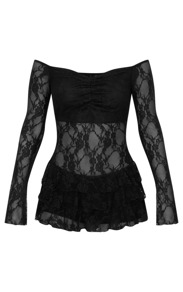 Have hearts racing with this black lace bardot rara skort romper. Brought to you in a black lace material with a bardot design, we just can’t get enough. This rara skort romper is all you need to feel confident. Pair with your fave hoop earrings and some court heels to make a statement this season.