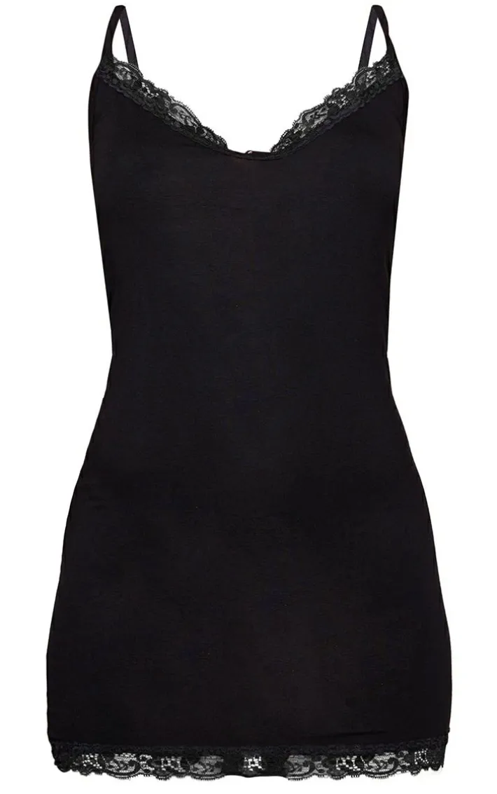 Turn up the heat on your after-dark look with this nightie. Featuring a black jersey material with lace trim detailing and a mini length, we’re obsessed. Just add fluffy slippers and a satin robe to complete the look.