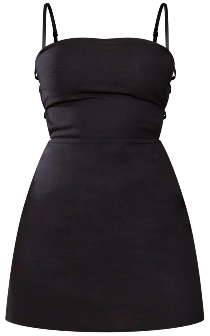 We’re obsessed with this black linen look strap side bodycon dress for any weekend plans you might have. Made from a black linen look material with side strap detail, a square neckline and a strappy design, how could you resist? this bodycon dress is sure to tick all the dress code boxes with its super chic style. Team with gold hoops and clear heels for a fresh weekend look.