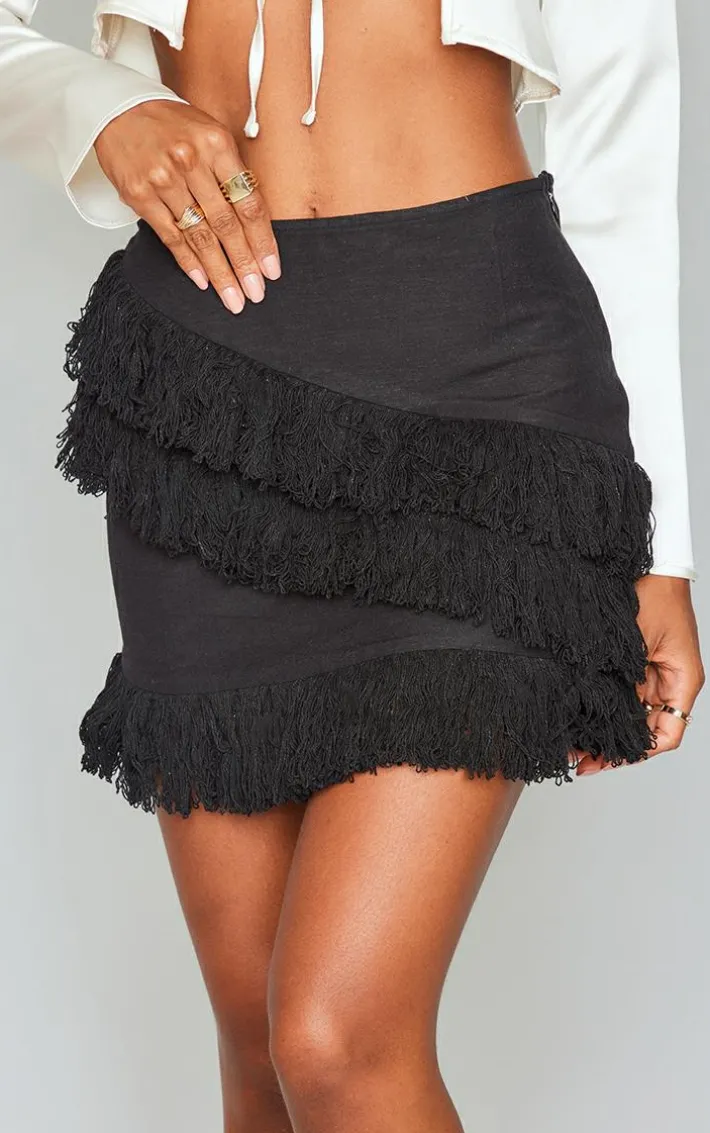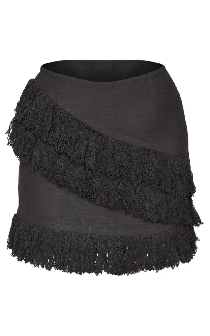 Hit refresh on your new season wardrobe with this black linen look tassel front mini skirt. Brought to you in a black hue linen look material with a tassel front design and a mini fit, how can you resist? This mini skirt is perfect for dressing up or down to suit your weekend plans. Style with a crop top, sandals and a mini bag for an effortlessly chic look we just can’t get enough of.