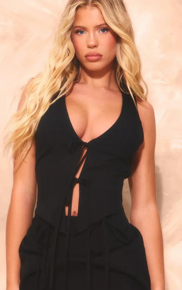 Be on trend this season with this black linen look tie bodycon dress. Brought to you in a black linen look material with a tie front and a figure-hugging fit, you will bring all the edge to your outfit of the day. This bodycon dress is perfect for those on the go days. Team with sandals and accessories to be the center of attention wherever you step foot this season.