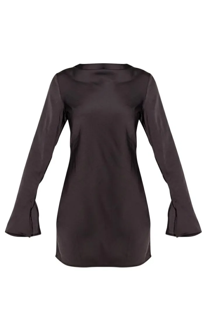 Have all eyes on you with this black long flare sleeve satin strappy back shift dress. This shift dress is brought to you in a black satin material with a long flare sleeve design and a strappy back, how could you say no? When the weekend calls so does this dress. Just add your dreamy high heels and accessories for a glam finish.