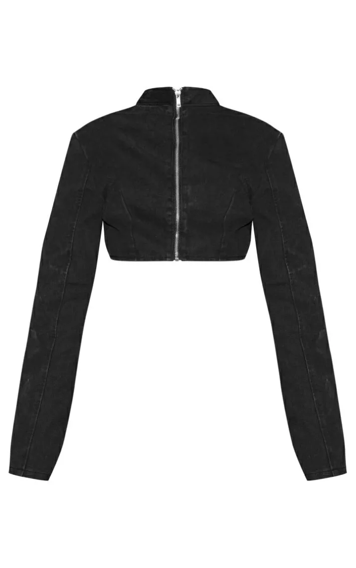 Take your wardrobe from 0-100 with this black long flared sleeve denim crop top. Made from a black denim material and featuring a zip-up fastening and flared sleeves, how could you say no? Perfect for dressing up for the weekend or down for an everyday vibe, this crop top ticks all the boxes. Pair with a matching hue mini skirt, knee-high heeled boots and a statement bag for a fool-proof finish.