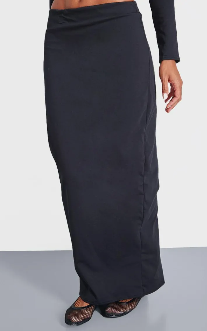 Turn heads for all the right reasons with this black low rise maxi skirt. Brought to you in a black material with a low rise fit and a maxi length, you are sure to make a statement in this unreal skirt. Team with the matching top, ballet flats and your fave accessories for a look that will earn you all the styling points this season and beyond.