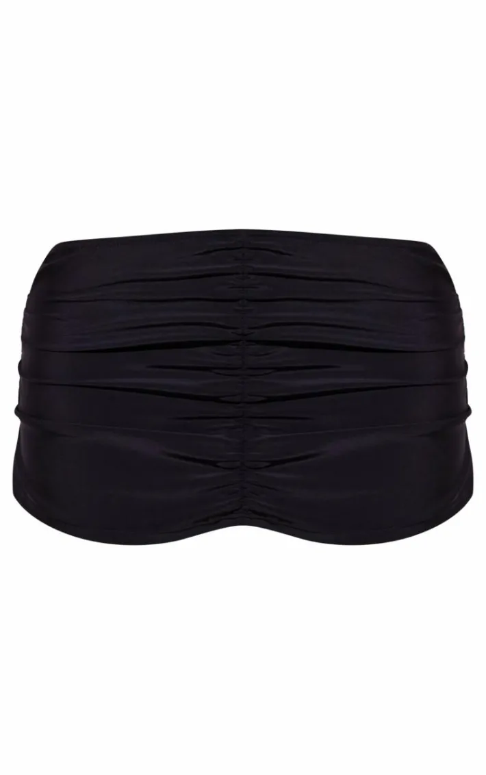 Make a statement with this black low rise ruched swim skirt. Brought to you in a black material with a low rise fit, we are seriously obsessing over this swim skirt. Its ruched detail adds a flattering fit you won’t be able to resist. Team with the matching top and your poolside essentials for a look that will turn heads for all the right reasons.
