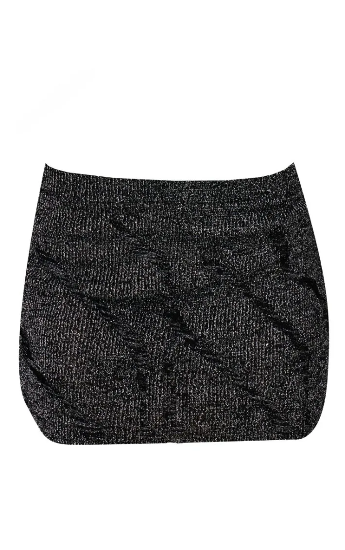 Say hello to new season knits with this black lurex knitted contrast detail mini skirt. We are obsessed with its black contrast detail feature, lurex knitted fabric and mini skirt fit, so why not add to your basket? Shop the look and style with the matching crop top and heels for a fierce finish.