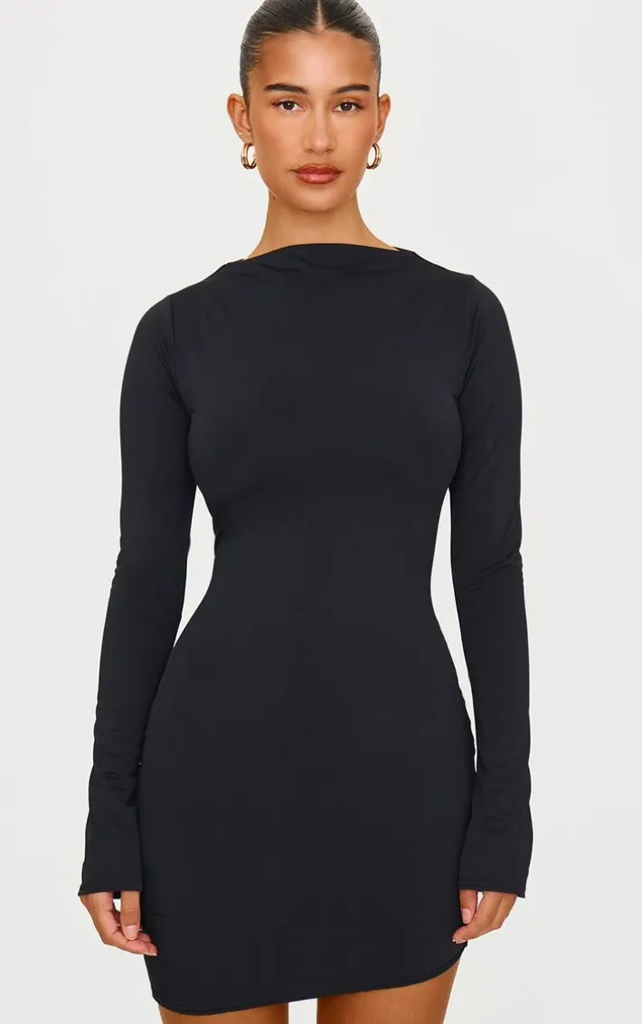 Keep it chic with this black matte sculpt boat neck long sleeve mini dress. Brought to you in a black matte sculpt material witha boat neck design and a long sleeve fit, we are seriously obsessing over this mini dress. Team with a pair of heels and minimal accessories for a fool proof finish.