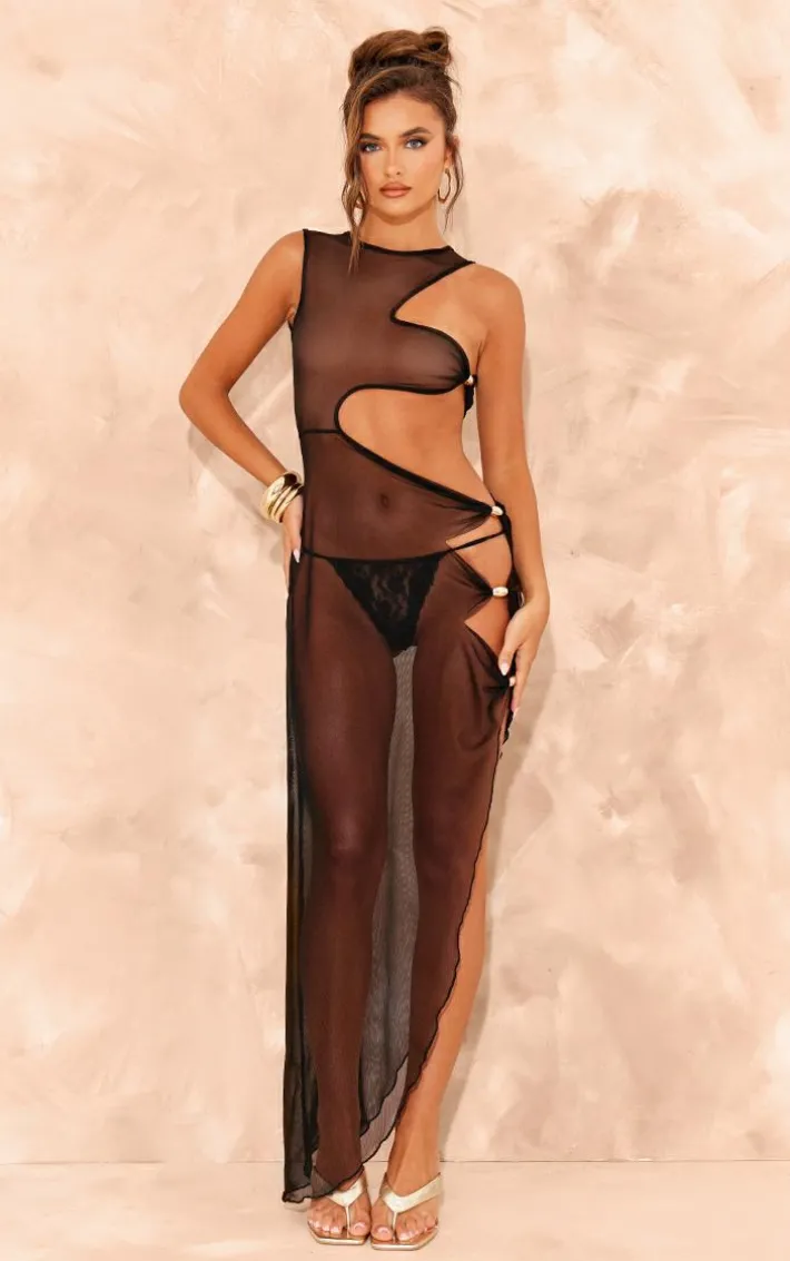 There’s no such thing as too many dresses , and you’re in need of this black mesh gold trim cut out maxi dress. Brought to you in a black mesh material with a gold trim, you’re sure to be the best dressed in this unreal maxi dress. Its cut out detail will have hearts racing no matter what. Style this with your go-to heels, and accessories to have all eyes on you.
