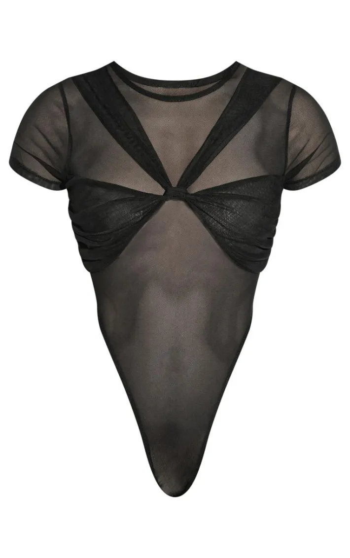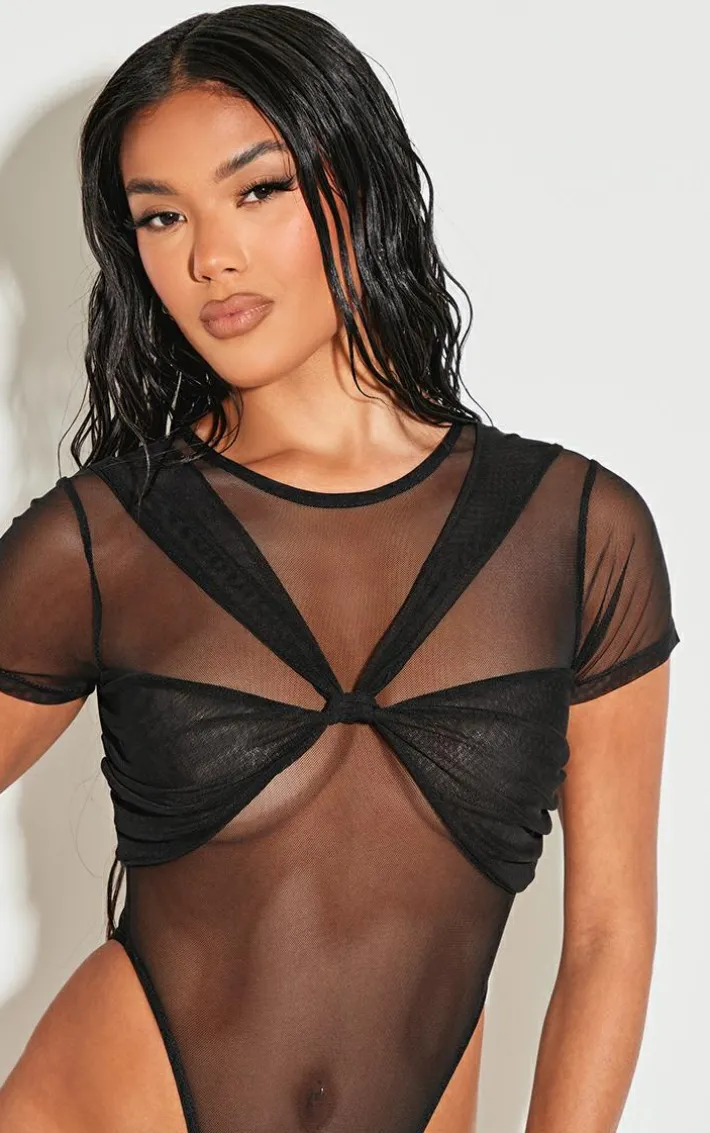 Make a statement this weekend in this black mesh knot bust panel detail body. Brought to you in a black mesh material with a knot bust panel design, short sleeves and a flattering fit, how can you resist? Style this mesh bodysuit with capris, slip on heels and gold accessories for a look they won’t be able to take their eyes off.