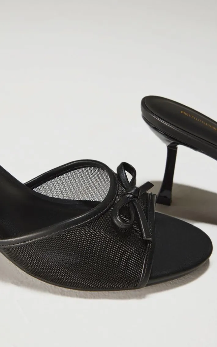Add a touch of chic to your footwear collection with these black mesh round toe bow strap mid heeled mules. Brought to you in a black hue mesh material with a round toe design, bow strap detail and mid heel, these mules are a must have. How can you resist? Style with an evening look for a classy finish everyone will be asking about.