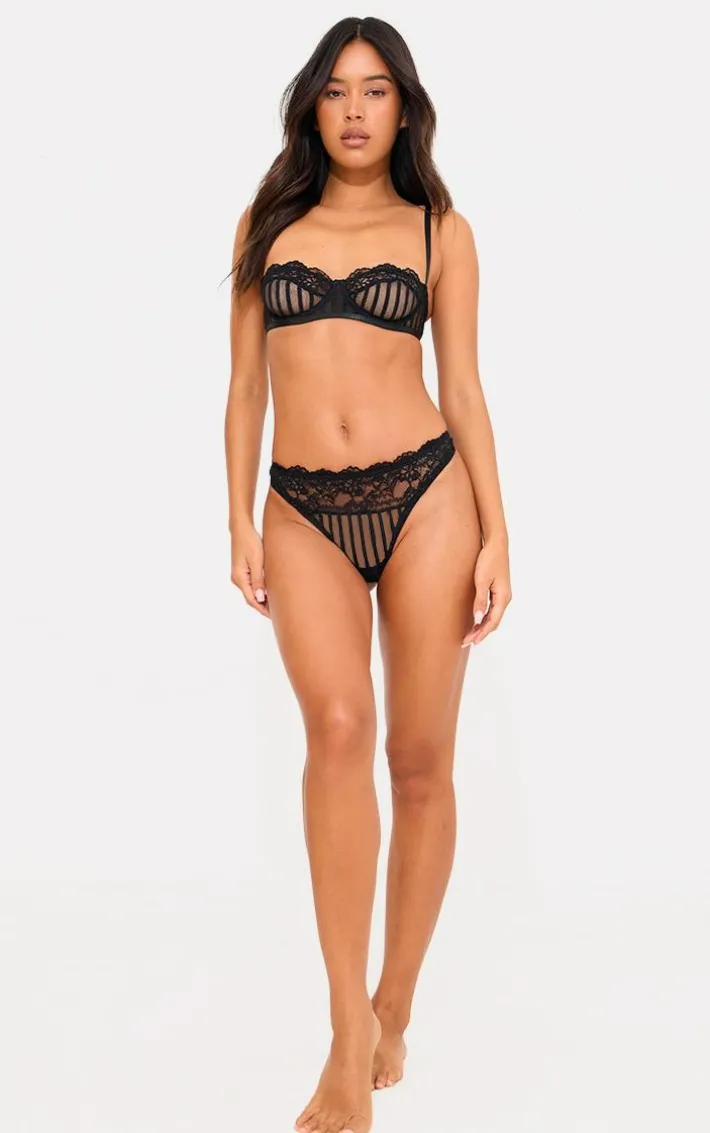 This black mesh stripe underwired bra is all the new you need this season. Made from a black hue mesh material with a stripe design and underwired detail, this bra is a must have. Style with the matching thong underneath a chic outfit of the day to elevate the look.