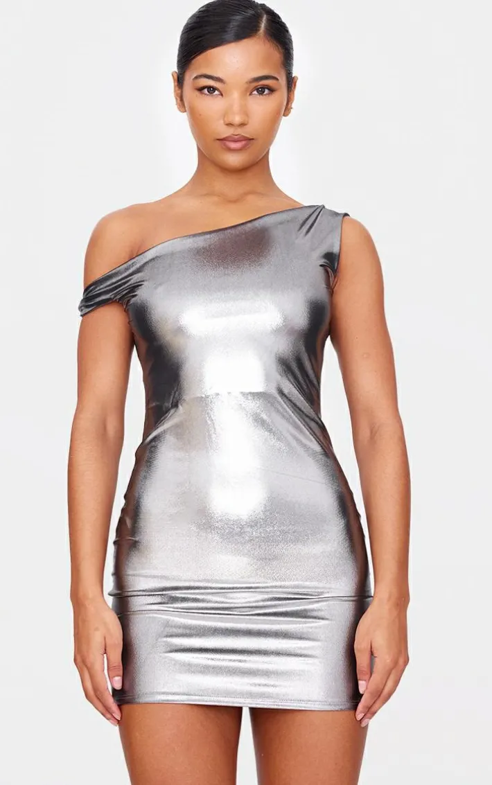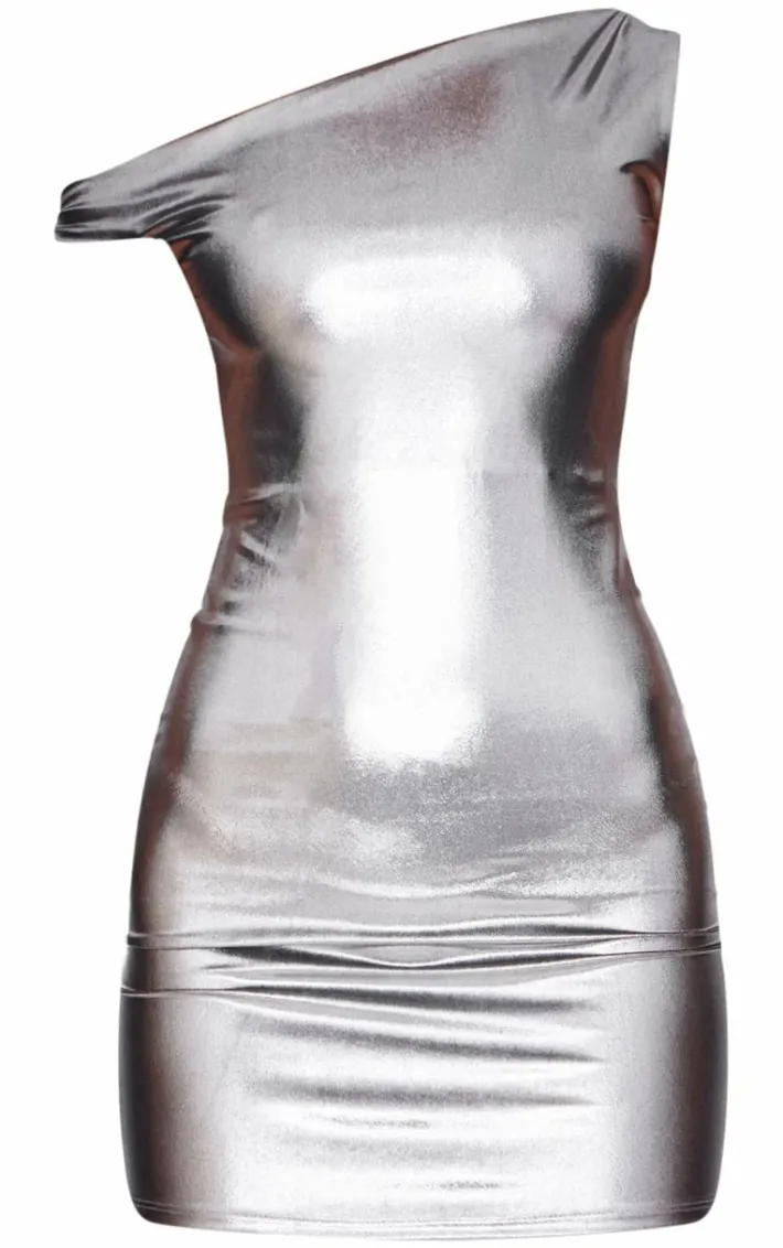 Turn heads whenever you walk in the room with this black metallic asymmetric one shoulder mini dress. Brought to you in a black metallic material with an asymmetric one shoulder design. Team this mini dress with a pair of heels and your fave accessories for a look that will make you feel confident.