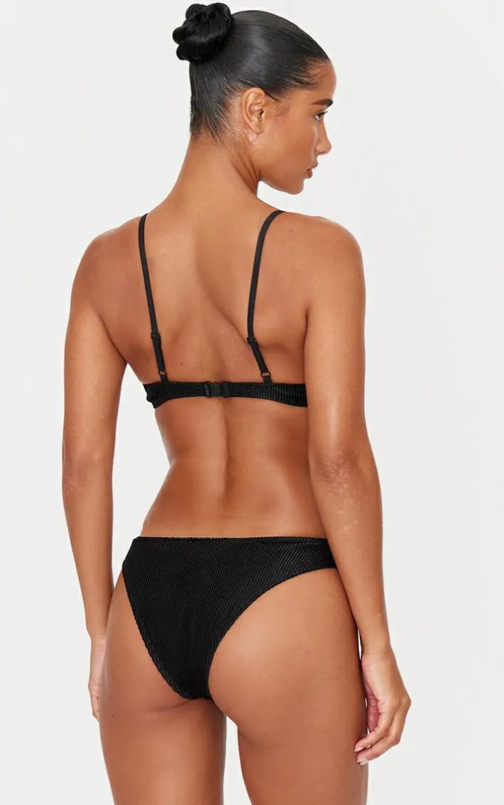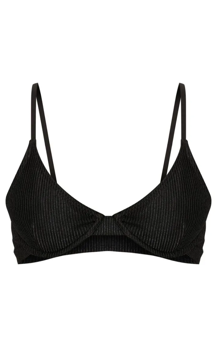 Top up your tan in style with this black metallic crinkle underwired bikini top. With its metallic crinkle fabric, underwired design and back clasp closing, it’s your new holiday staple. Style with the matching bikini bottoms, your fave pair of sunnies and any must-have accessories for a chic look.
