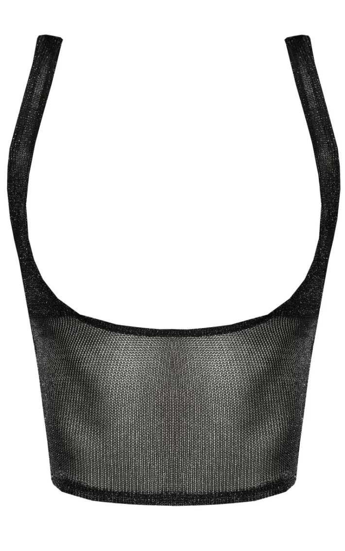 Get your glam on with this black metallic knit bra detail top. Made from a black metallic knit material with a bra detail, you’re sure to have all eyes on you. When the weekend calls so does this top. So what are you waiting for? Shop the look and style this black top with capri leggings, statement accessories and a pair of heels. It’s a yes from us.