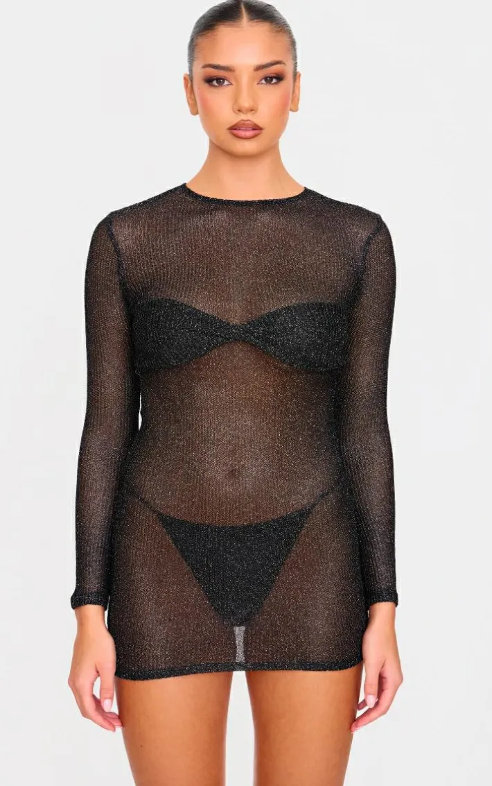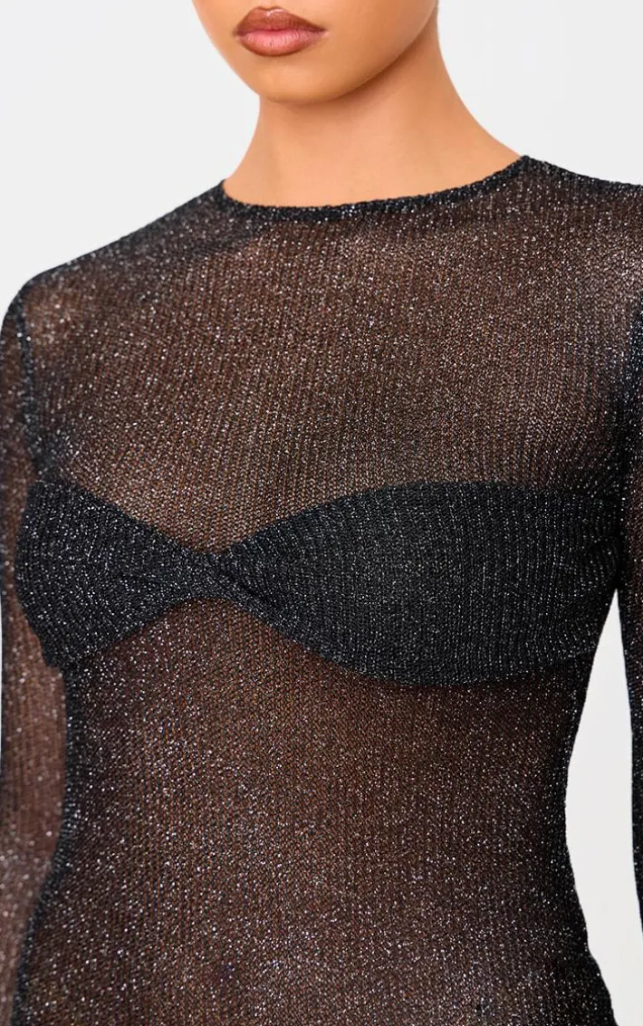 The new you starts here, opt for this black metallic ribbed twist bust long sleeve mini dress for your next event. Made from a black hue metallic ribbed material with a twist bust design and long sleeve detail, this mini dress is a must have. Pair with slip on heels and simple accessories for a look like no other.