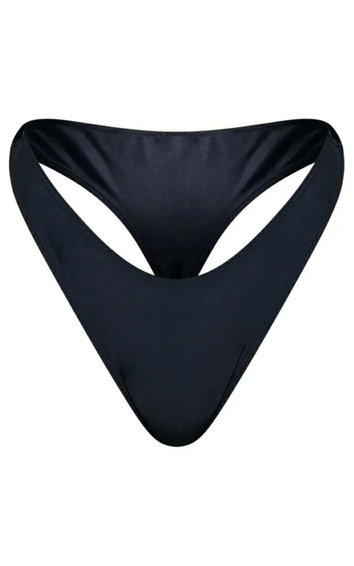 These bikini bottoms are the ultimate staple piece in your holiday wardrobe. Featuring a black material in a thong design and a flattering fit. Team these with the matching bikini top and finish the look with a kimono.