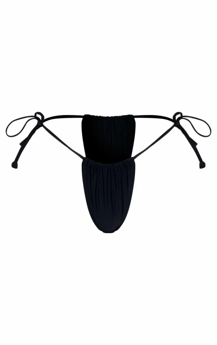 These bikini bottoms are at the top of our swimwear hitlist. Featuring a black fabric with ruching detail and tie sides, we’re obsessed. Team with a string bikini top and your poolside essentials for a look that will have heads turning for all the right reasons.
