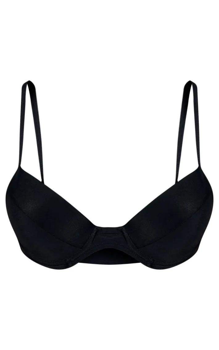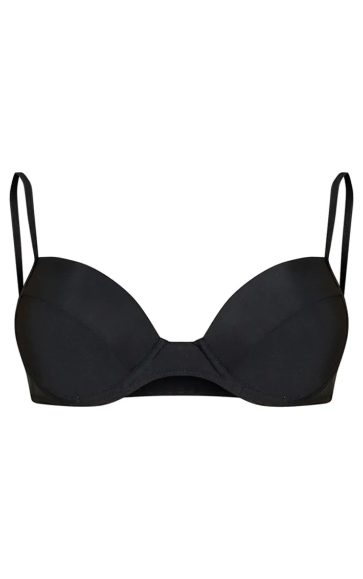 This bikini top is a must in every ‘s vacay wardrobe. Featuring a black material with a push-up design and cupped detailing, we are obsessed. Keep your look one tone this season and style with a pair of matching black bikini bottoms.