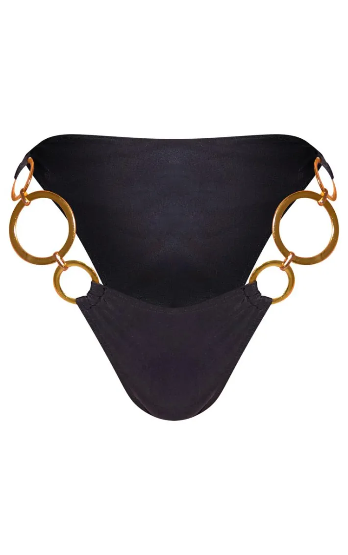 Soak up the sun in style with these black O ring high leg bikini bottoms. These bikini bottoms are brought to you in a black hue material with a high leg and an O ring detail, how could you resist? These bikini bottoms won’t let you down. Simply style with the matching top, sandals and accessories for a fool proof finish.