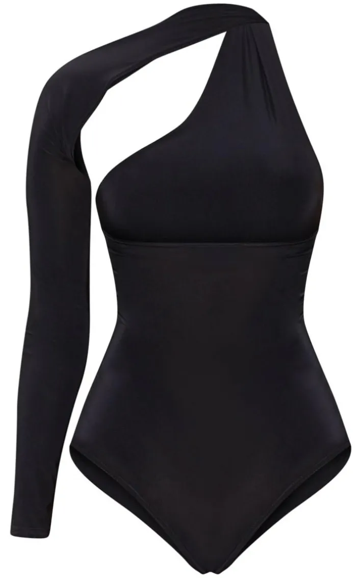 Add a touch of elegance to your look with this dreamy one shoulder bodysuit. Featuring a black slinky material with a one shoulder design and an asymmetric neckline, what’s not to love? A one shoulder bodysuit gives effortless style and an utter chic look, they won’t be able to take their eyes off you. A style you can wear from season to season, just team it with a slinky midi skirt and your highest heels for an occasion worthy look.