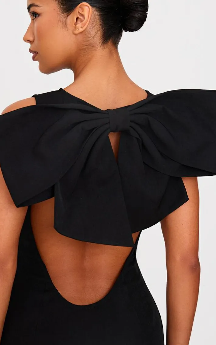 Your new season staple has arrived with this black oversized bow scoop back maxi dress. Brought to you in a black material with an oversized bow detail and a scoop back design, this maxi dress is all you need to set major trends this season. Team with a pair of and your fave accessories to complete the look that will get you noticed.