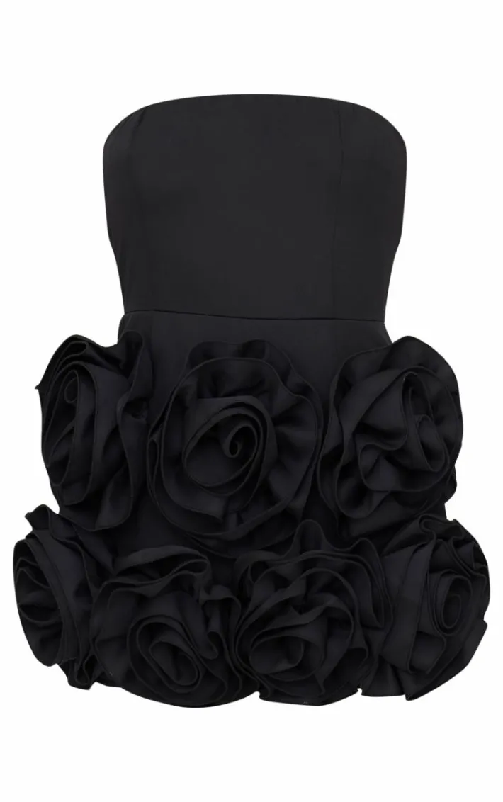 This black oversized rose detail bandeau skort romper deserves to be in your bag. Brought to you in a classic black shade, with a luxe oversized rose design and flattering bandeau neckline, this skort romper is all the new you need. Team with a pair of heels and simple accessories for a weekend look like no other.