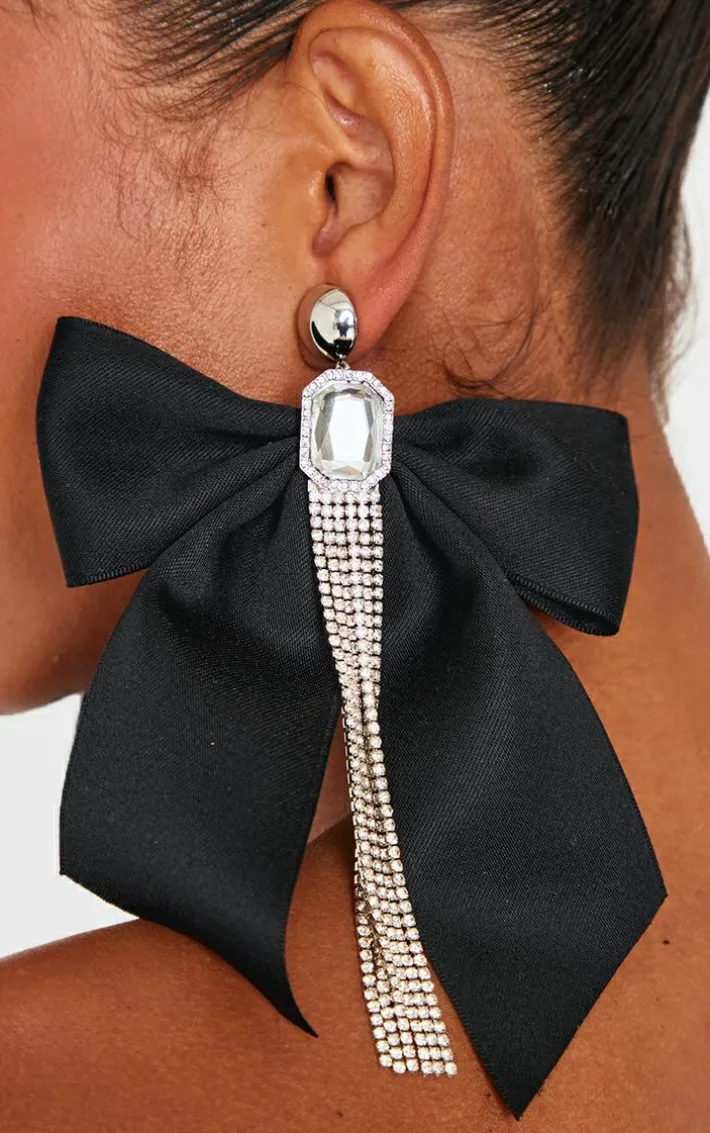 When your weekend look is in need of a little something extra, look no further than these black oversized satin bow jewel diamante statement earrings. With a black oversized satin bow and diamante jewel detailing, how can you resist? Style these statement earrings with your fave wardrobe pieces to elevate any look.