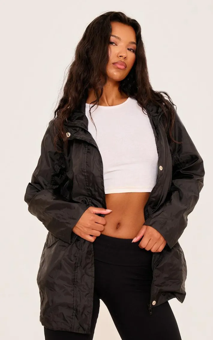 Take your everyday look to the next level with thisblack pack a mac pocket detail jacket perfect for your everyday styling. Brought to you in a black material with pocket detailing, we simply can’tget enough. With It’s pack a mac style this jacket is sure to be your new everyday go-to. Style with a white crop top and black leggings for a look that we can’tget enough of.