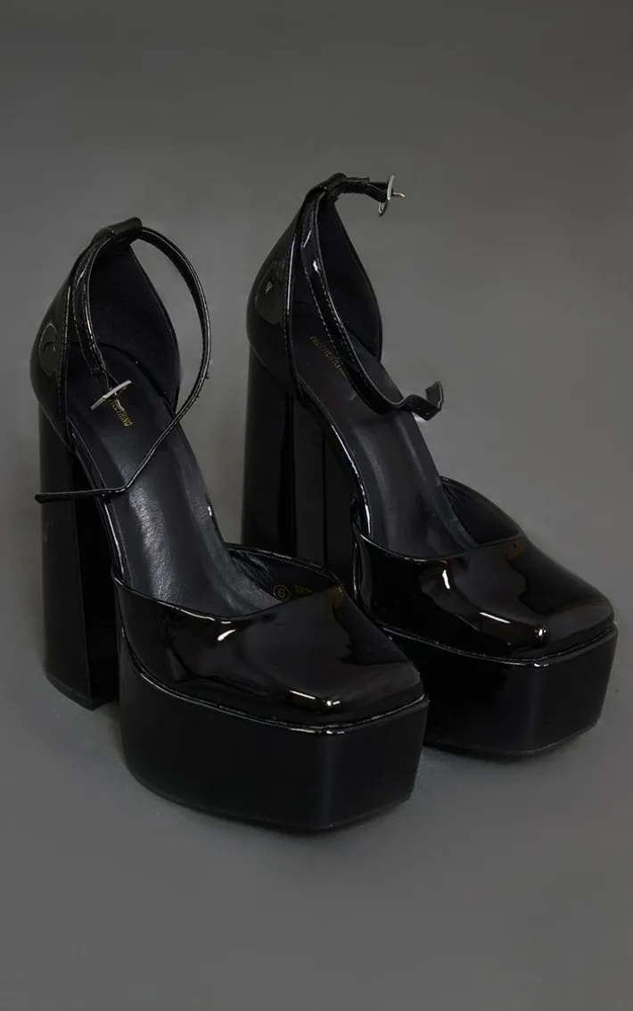 Take your weekend ‘fit to a whole new dimension with these black patent PU square toe platform high block heeled sandals. Brought to you in a black patent PU material with a square toe design and a platform high block heel, we’re in love. Team these platform heels with your fave weekend fit for a fierce look everyone will want.