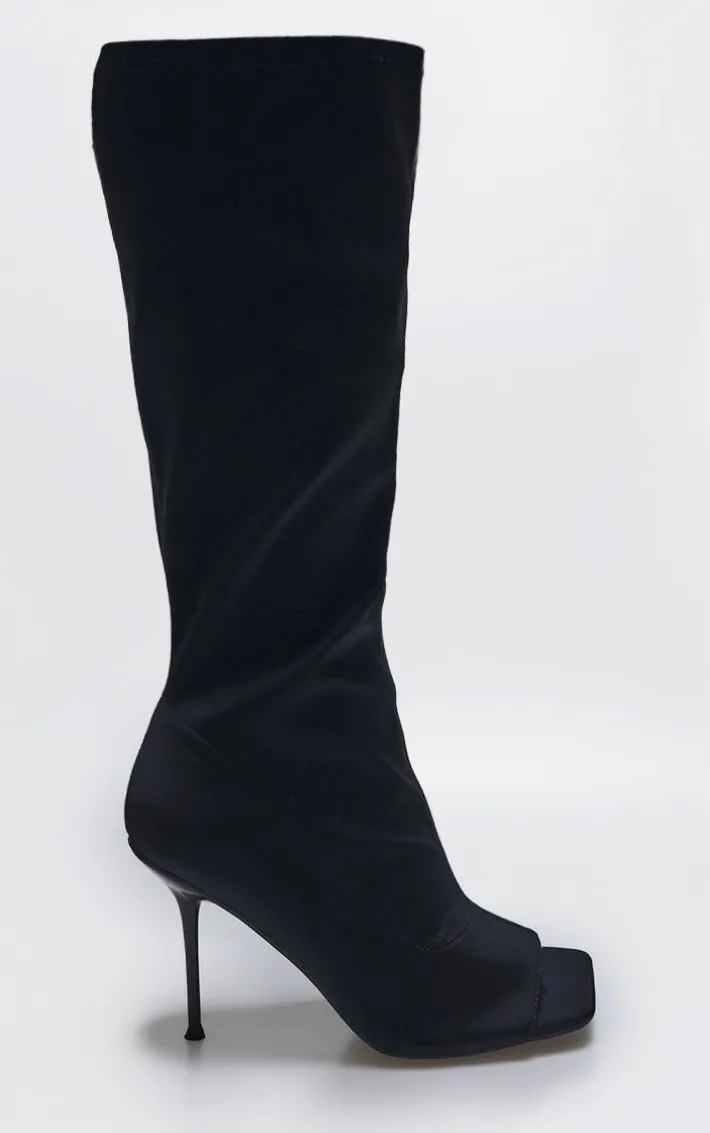 Bring all the drama to your weekend look with these black peep toe wide fit high stiletto knee high boots. Made from a black material with a peep toe design, a wide fit and high stiletto heels, how can you resist? Style these knee high boots with your fave wardrobe pieces to take your look to a whole new level.
