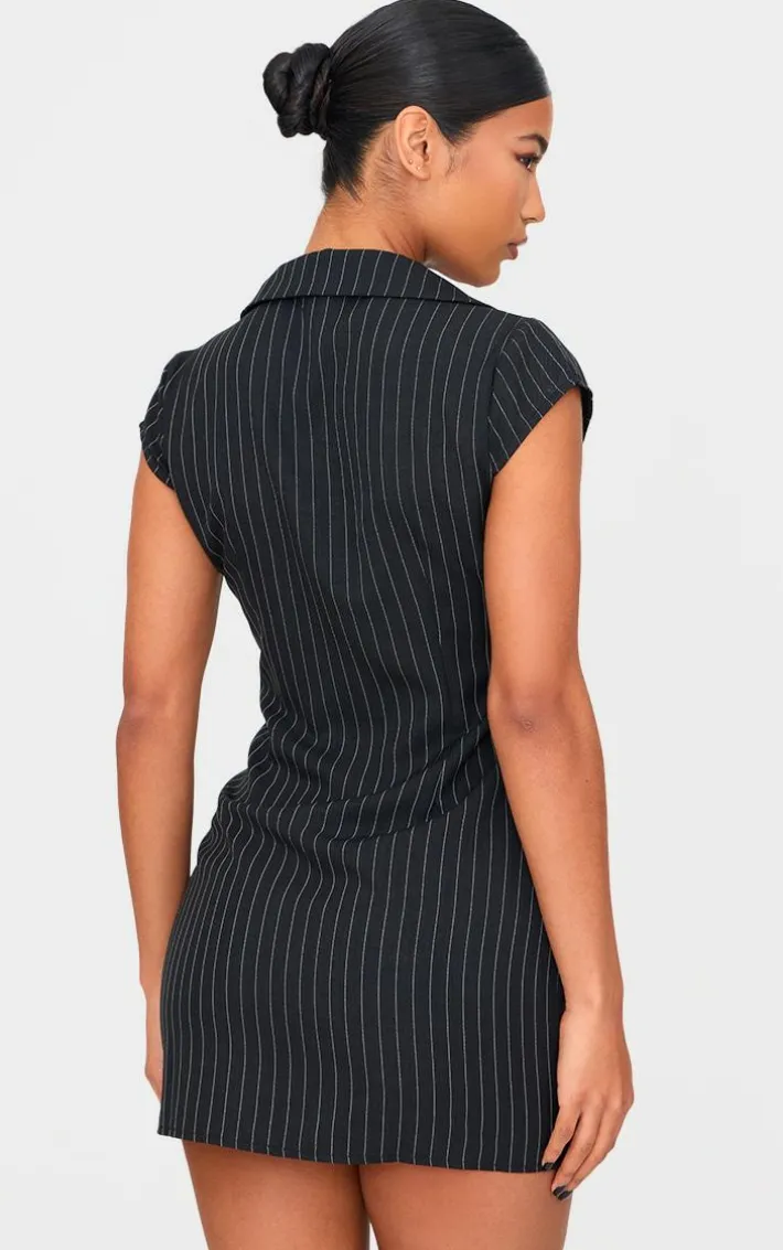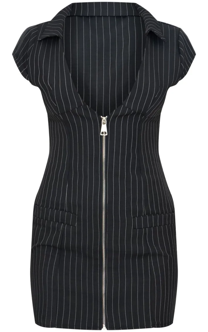 Look all kinds of chic in this black pinstripe pocket detail zip up mini dress. Brought to you in a black hue material with a pinstripe design, pocket detail and zip up fastening, this mini dress is all the new you need. Style with sheer tights, slip on heels and simple accessories for a look like no other.