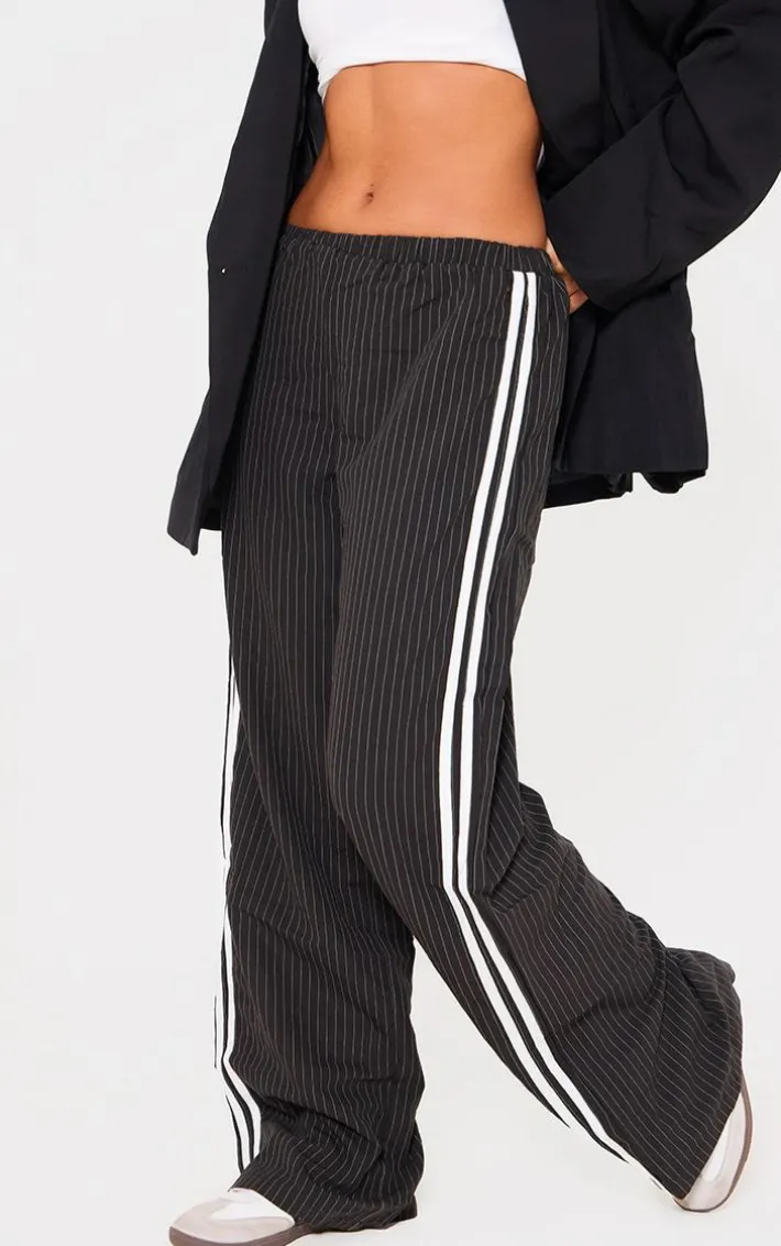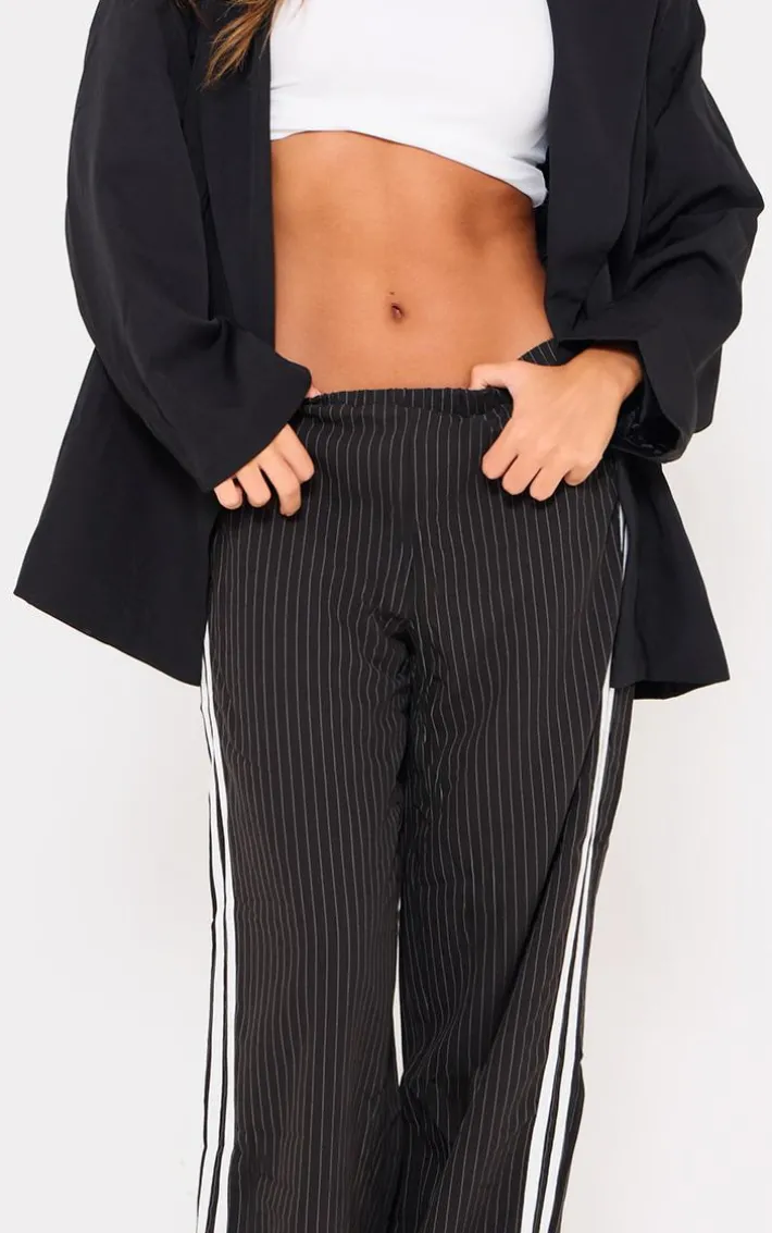 Get ready to have all eyes on you with these black pinstripe side stripe detail drawstring low waist pants. Brought to you in a black material with a pinstripe stripe detail and a drawstring low waist design, what’s not to love? With a flattering fit you’ll sure to earn all the likes with these dreamy pants. Finish off the look with a basic tee and your fave comfy sneakers. It’s a yes from us.