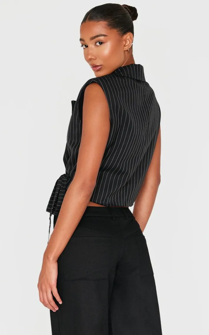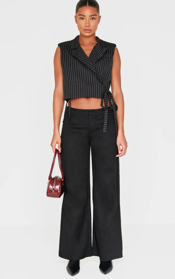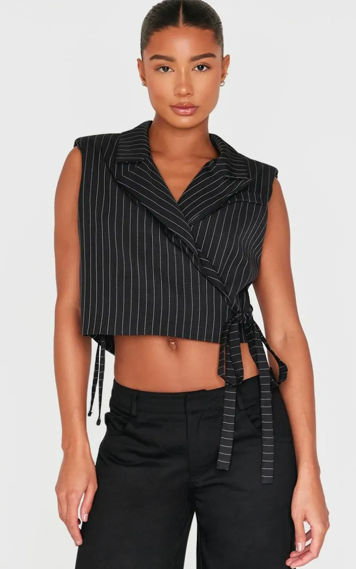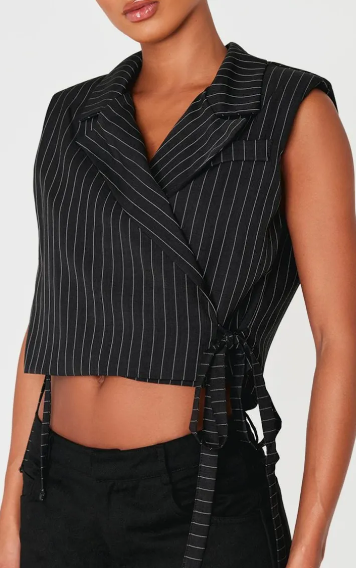 This black pinstripe tie boxy vest is sure to give a chic finish that won’t go unnoticed. Brought to you in a must have black hue, with a pinstripe design and boxy fit, you really can’t go wrong. Pair with some black pants and heels for those throw on and go moments. It’s a yes from us.