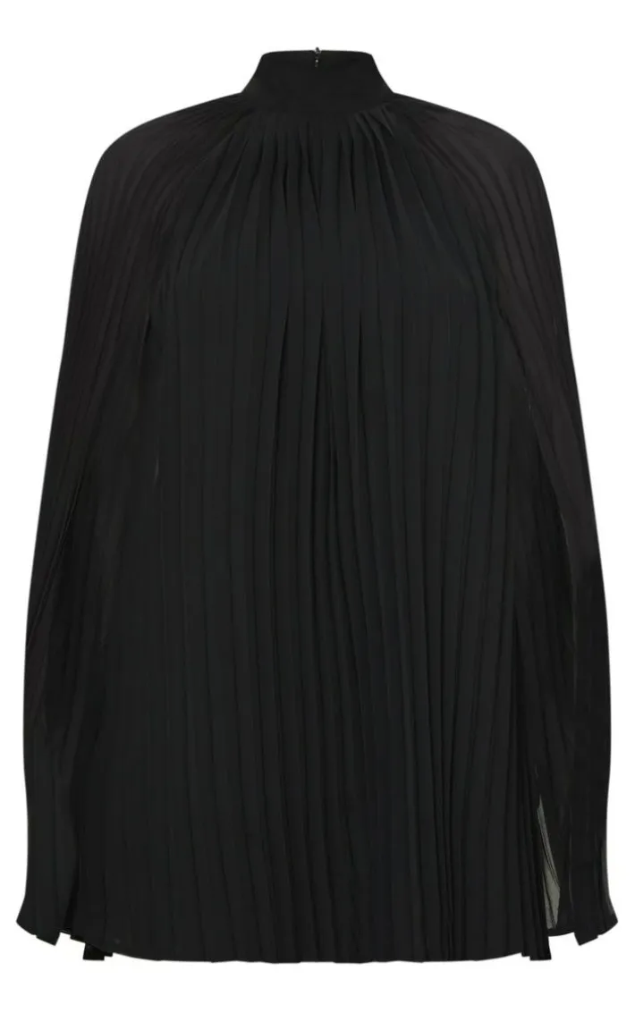 Elevate your weekend look doll with this elegant shift dress. Featuring a black fabric with pleated detailing and a cape design, team this with heels and gold jewelry for a look we’re loving.