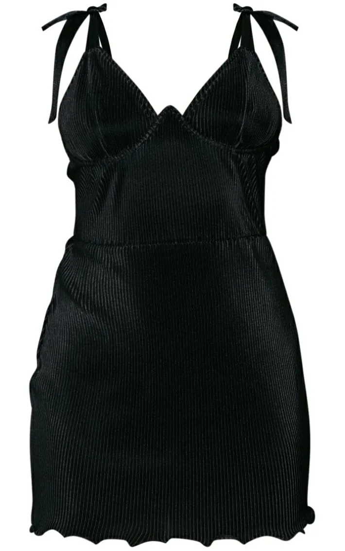 Take on your weekend the right way with this statement black plisse cup detail tie shoulder shift dress. Made from a black plisse material with cup detailing and a tie shoulder design, this is everything we’re loving and more. With It’s figure-hugging fit this dress is sure to hug you in all the right places. To complete the look style this seamlessly with clear high heels and accessories for a look that will secure you all the likes.