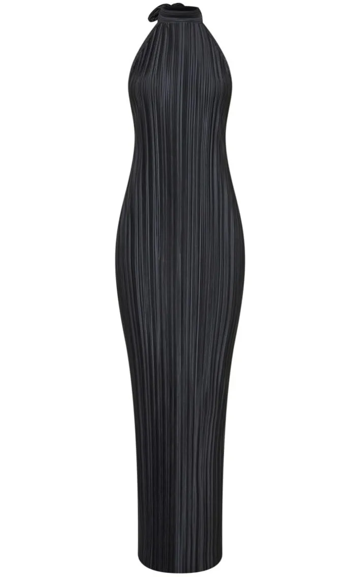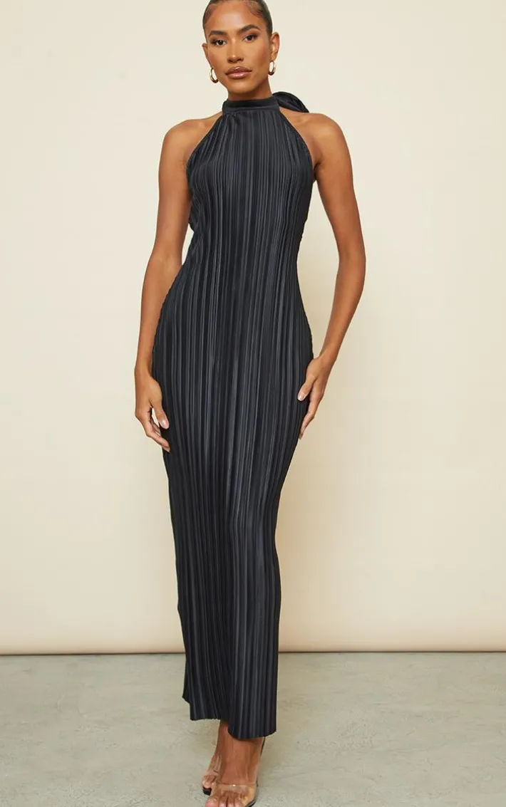 This unreal black plisse high neck low back maxi dress is everything we are loving for your next upcoming occasion and beyond, get ready to steal all the stares. This dress includes a black plisse material with a high neck style and a low back design, you’re sure to be adding straight to basket. Style with clear slip-on heels and gold hoop earrings for a look everyone will be obsessing over.