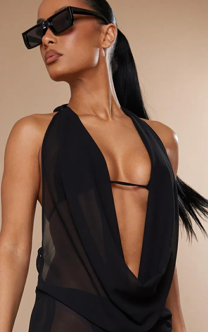 Get that effortlessly chilled vibe on-point with this black plunge front open back beach dress. This dress is made from a black hue with a plunge front for a fiercely feminine look we are obsessed with. With an open back design, this dress is sure to make you center of attention. Style with some clear heels and a pair of gold hoops to complete the look.