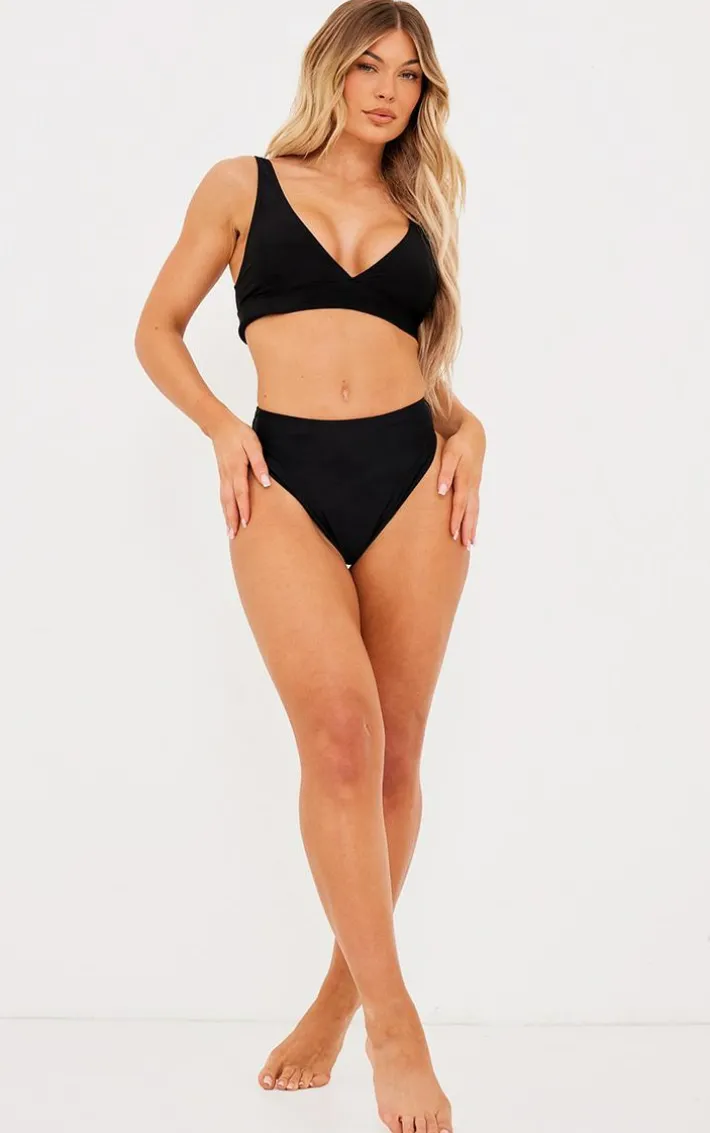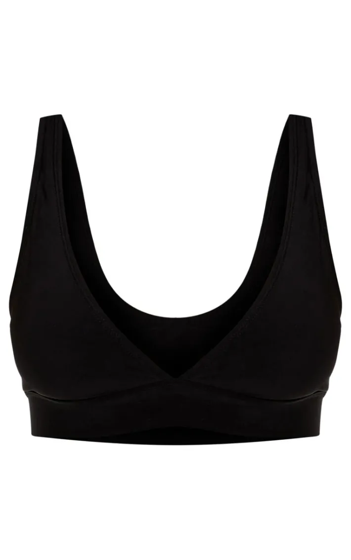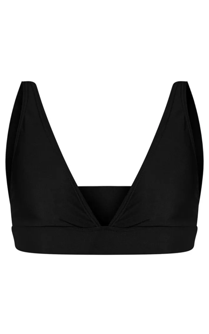 Make heads turn this season with this simple but essential bikini top. Featuring a black fabric with a plunging neckline and wide band design, we’re obsessed. Team this with some matching hue bikini bottoms to have all eyes on you.