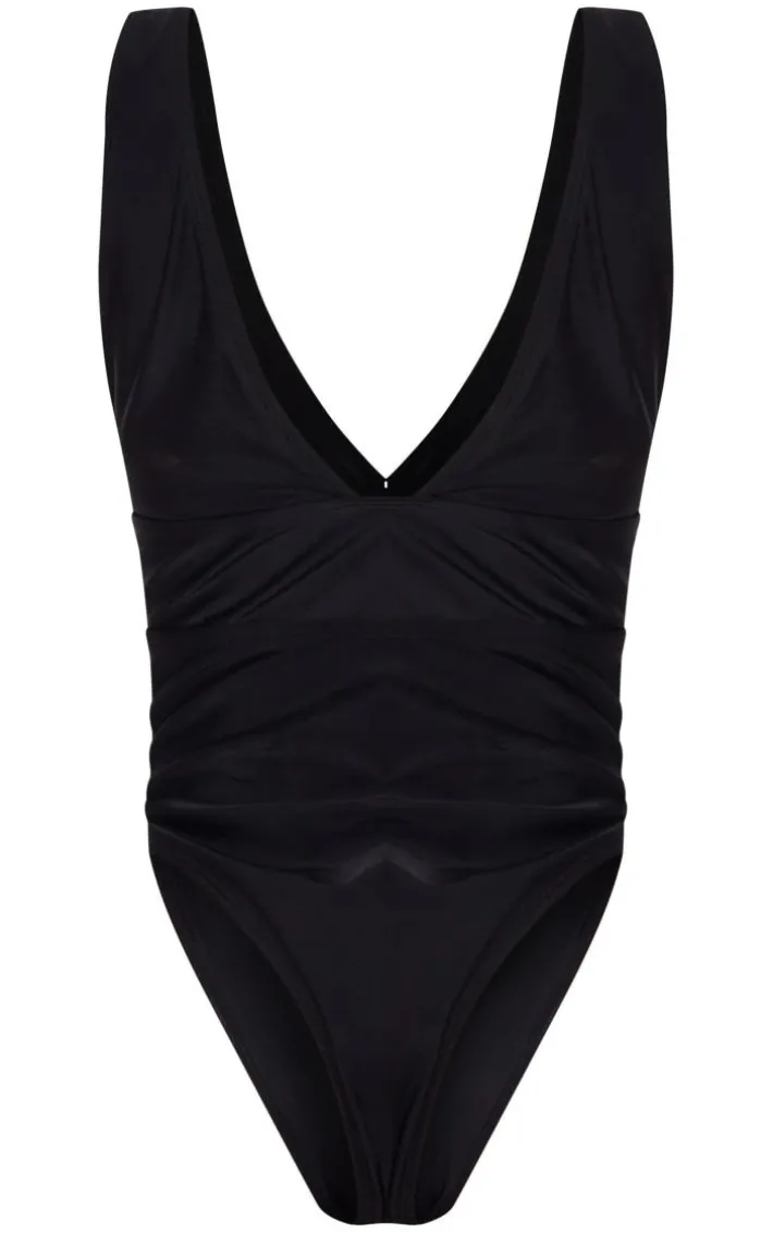Make heads turn in this black plunge swimsuit. This swimsuit is brought to you in a black hue with a plunge neckline and a figure-flattering fit, we can’t stop crushing on this. With it’s plunge front this swimsuit will have you feeling the best version of yourself. Just add your go-to sandals and accessories for an effortless finish.