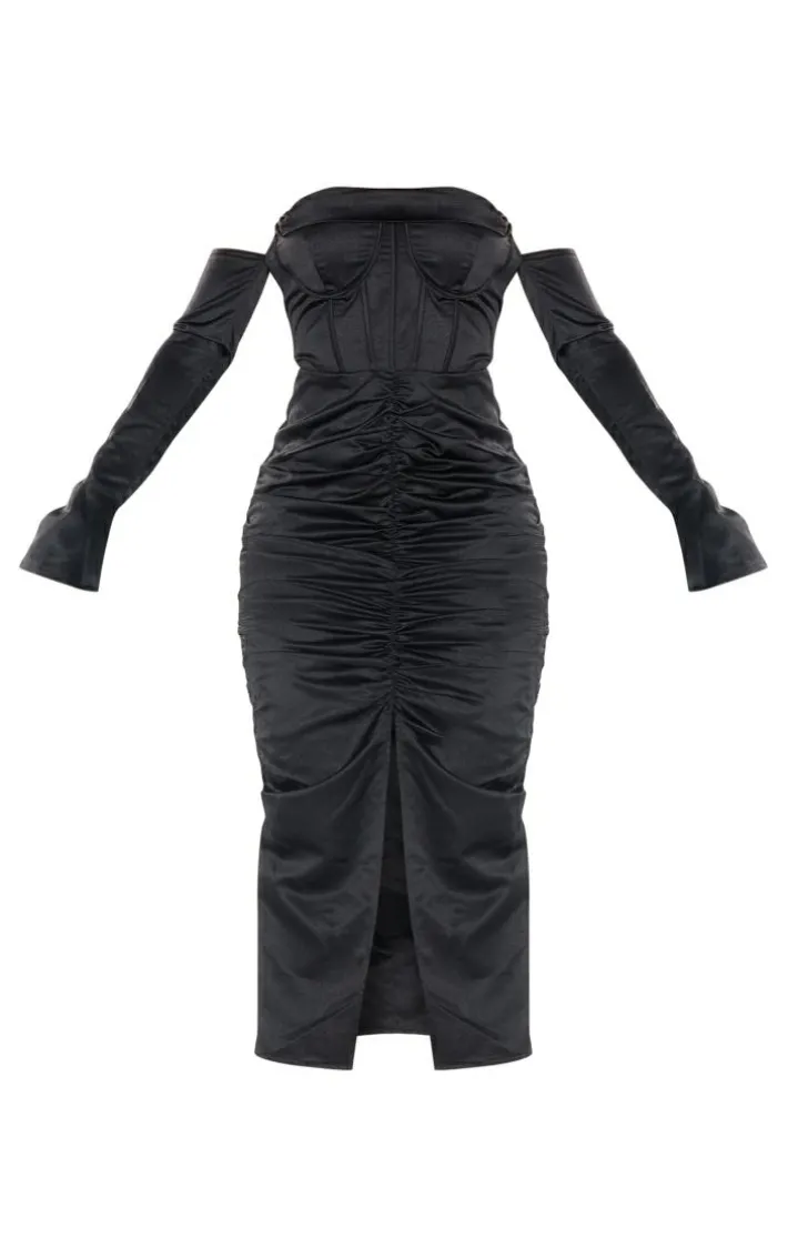 Got a special occasion coming up ? Then this black premium constructed satin draped front midi dress will help show off your confident side. It is made using a black constructed satin material with a draped front design and a midi length, how could you resist? Pair this satin dress with slip-on heels and a mini bag for a flawless finish.