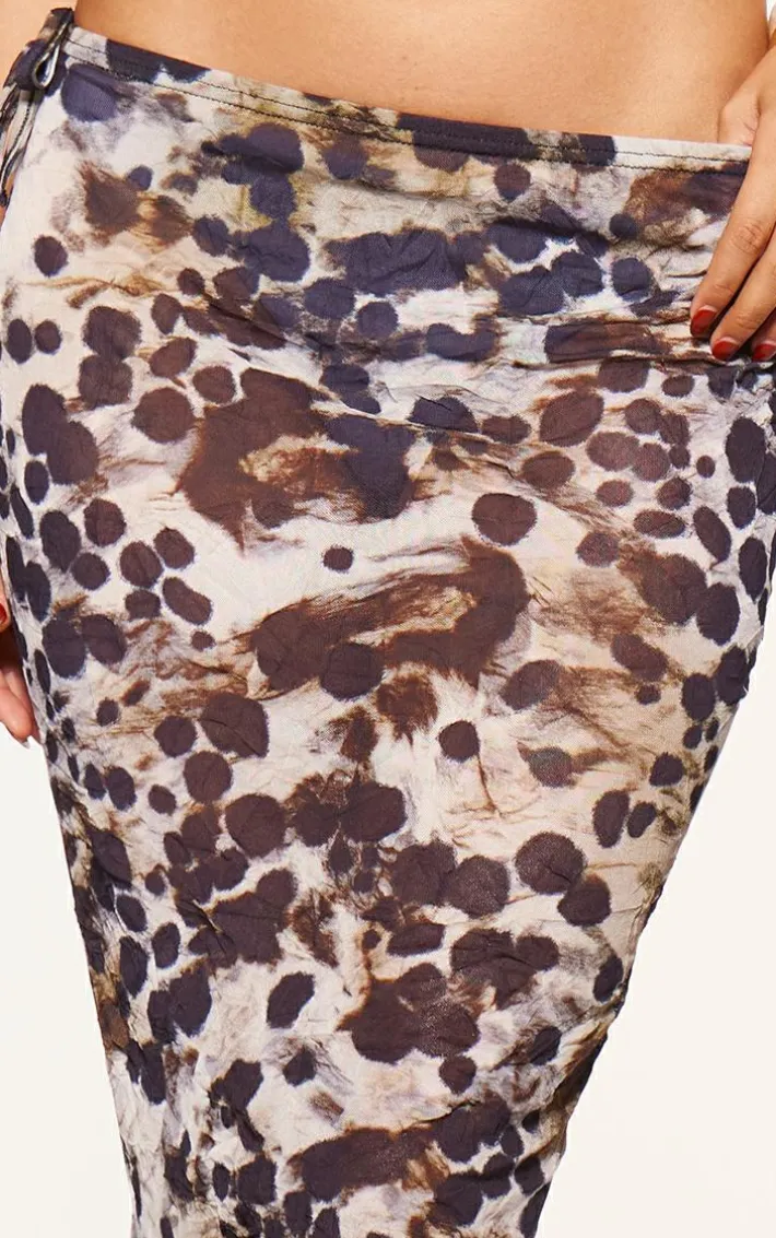 Take your weekend look to a whole new level with this black printed crinkle mesh low rise fish tail maxi skirt. Brought to you in a black printed crinkle mesh material with a low rise design and a flattering fishtail maxi fit, how can you resist? Style this maxi skirt with a crop top, heels and gold accessories for a look that is sure to make heads turn for all the right reasons.